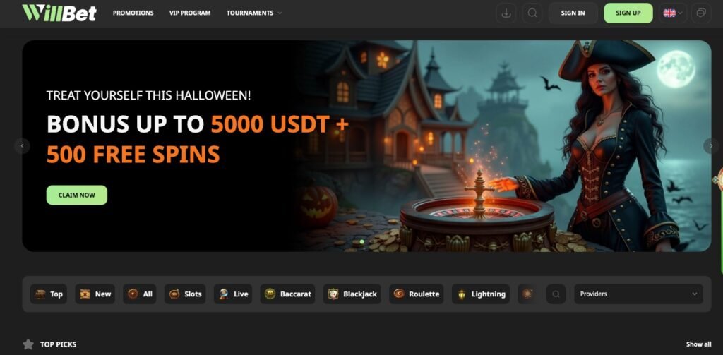 Willbet is another crypto casino, offering an impressive 500 free spins with their welcome offer.