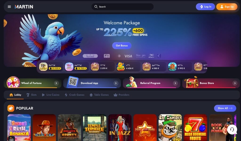 | Martin.Casino | 600 free spins | VIP club, bonus store, daily Wheel of Fortune |