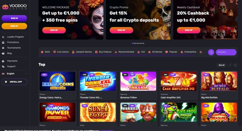 | Voodoo.Casino | 350 free spins | Tournaments, loyalty spins |