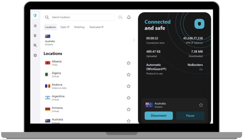 Proton VPN also provides several advanced privacy tools, including Secure Core routing, the ability to access the VPN through the Tor network, and open-source applications for full transparency.